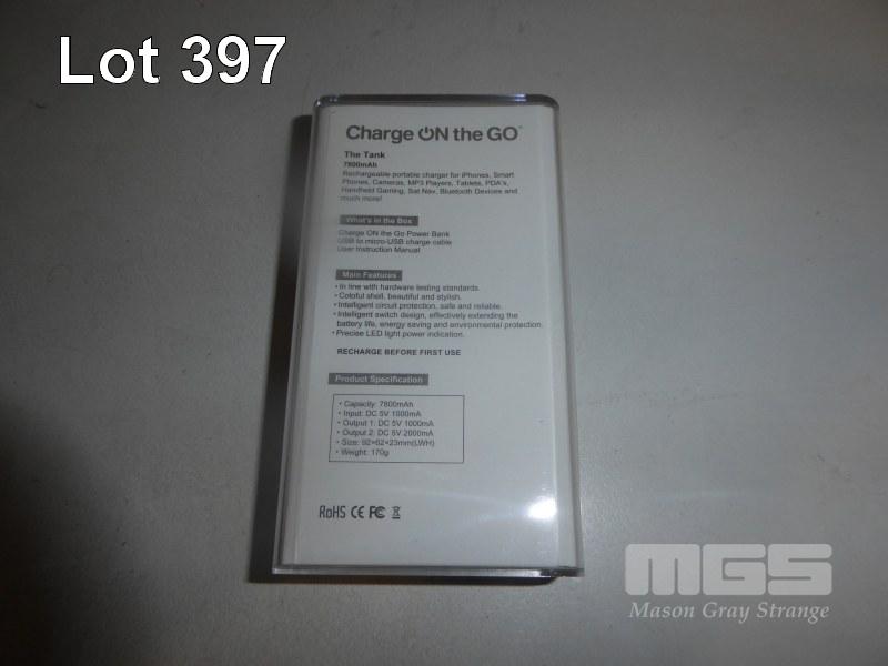 10 x CHARGE ON THE GO 7800mAh PORTABLE POWER CHARGERS, THE TANK, WHITE