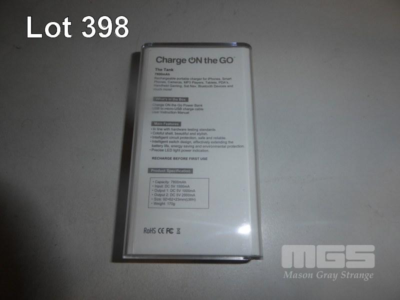 10 x CHARGE ON THE GO 7800mAh PORTABLE POWER CHARGERS, THE TANK, WHITE