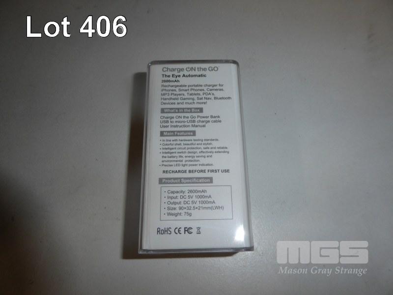 10 x CHARGE ON THE GO 2600mAh PORTABLE POWER CHARGERS, THE EYE, BLACK