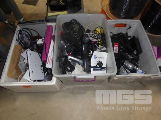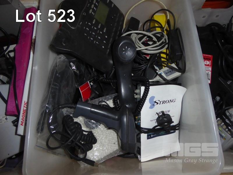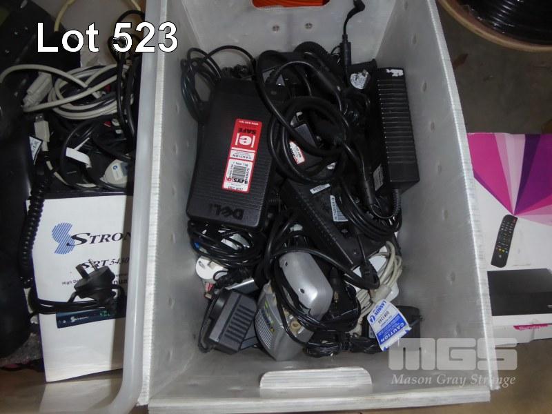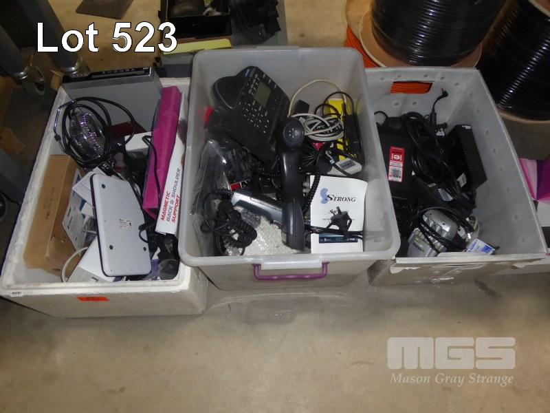 3 x BOXES ASST POWER ADAPTERS, SET TOP BOX, BARCODE SCANNER, CABLES ETC