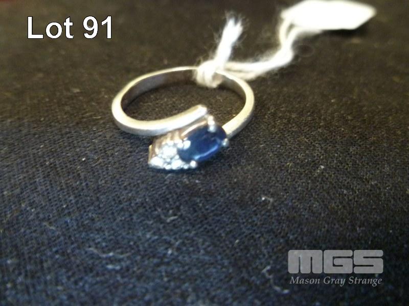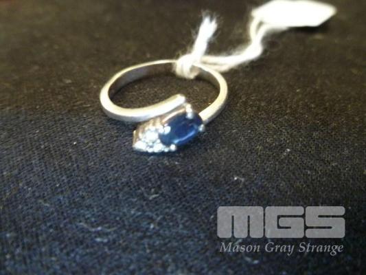 SILVER RING SET WITH SMALL DIAMONDS & LARGE SAPPHIRE, MARKED 925