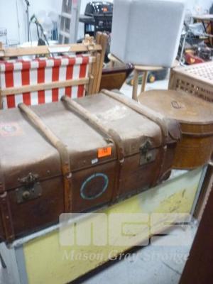 TIMBER BLANKET BOX, VINTAGE TRAVEL TRUNK & LARGE STORAGE TIN