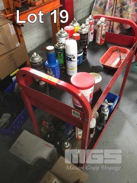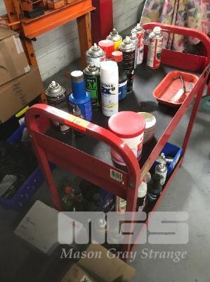 1-11 TOOL STAND,& LARGE QUANTITY CLEANERS, AEROSOLS, ETC