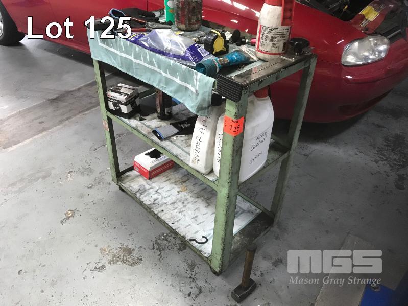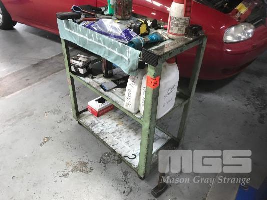GREEN WORKSHOP TROLLEY, MOBILE, 2 TIER, APPROX 75 x 45cm