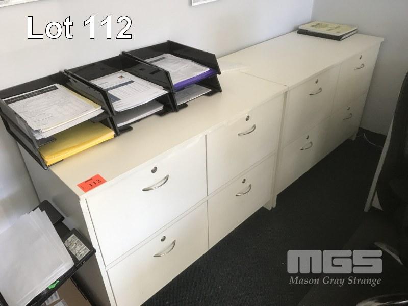 PAIR SIDE BY SIDE 4 DRAWER FILING CABINETS, WHITE TIMBER LAMINATE, 103 x 52cm