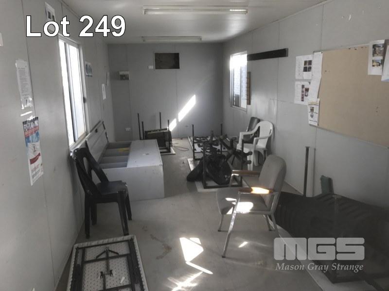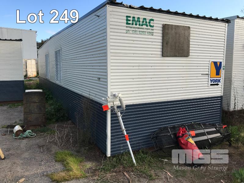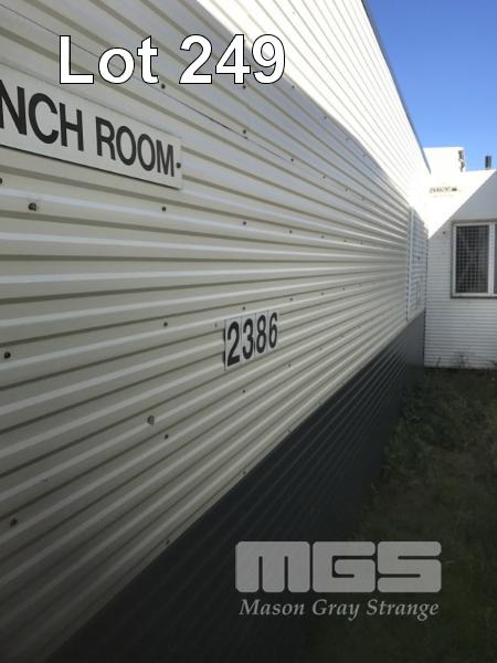 TRANSPORTABLE BUILDING, EMAC LUNCH ROOM 12 x 3m, 4 x WINDOWS, 1 x DOOR 2 x OFFICE CHAIRS, 14 x PVC CHAIRS, WATER COOLER, FRIDGE & 6 x TABLES SINK & BIRKO HWS, STATIONERY CUPBOARD S/NO: 2394X08 PLANT NO: 310048