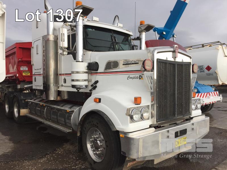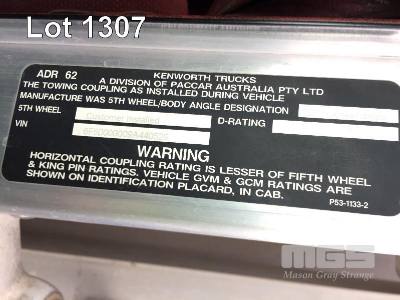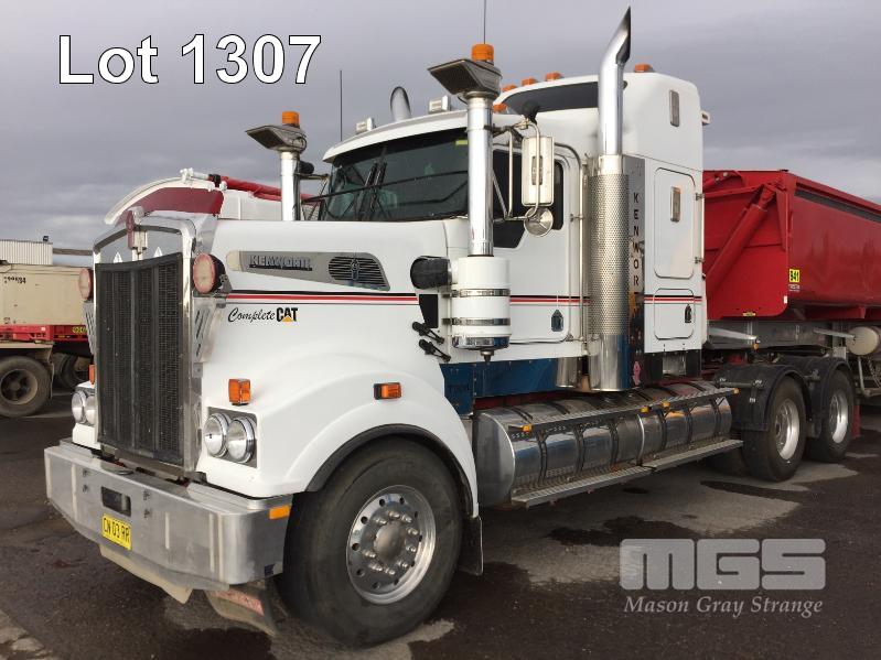 05/09 (CP) KENWORTH T908 6x4 PRIME MOVER LONG NOSE REG: CN 03 RR (NSW) VIN: 6F50000009A440529 ODO: 991,521kms SHOWING HOURS: 19,875hours GVM: 26,500kg GCM: 130,000kg HP: 475 CAT C15, EATON FULLER 18 SPEED MANUAL TRANSMISSION, DIESEL, AIRBAG SUSPENSION, WHITE DUCO, 11R22.5 2 DOORS, 2 SEAT, AIR CON, ALLOY RIMS, CD PLAYER, CB RADIO, DRIVING LIGHTS, HIGH RISE SLEEPER CAB, HYDRAULICS, ROCK SCREEN, TIPPER HOIST CONTROLS, VISOR, TOUCH SCREEN LCD SYSTEM VIESA SLEEPER AC UNIT BATTERY ISOLATION SWITCHES ROPS BAR, BATTERY ISOLATION SWITCHES 3 x FUEL TANKS & 1 x HYDRAULIC (LOCATED REGENCY ROAD, FERRYDEN PARK SA) (NO PAPERS, WITH 1 KEY/S, NO OWNER'S MANUAL, NO SERVICE BOOKS)