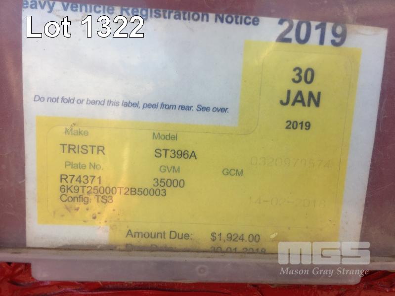 03 / 1996 TRISTAR IND ST33300-V302 TRIAXLE SIDE TIPPER SEMI TRAILER REG: R74371 (NSW) VIN / CHASSIS: 6K9T25000T2B50003 ATM: 35T SPRING SUSPENSION, SPIDER RIMS, 11R22.5, ROAD TRAIN RATED, 8.6m STEEL BODY WITH ROLL OVER TARP (LOCATED REGENCY ROAD, FERRYDEN PARK SA) (NO PAPERS)