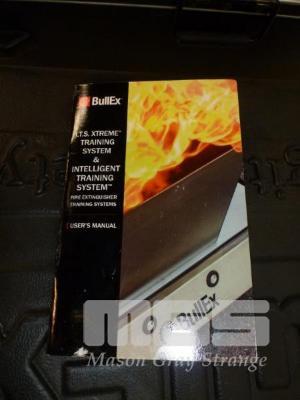 FIRE TRAINING SYSTEM, BULUEX COMPRISING ITS EXTREME BASE UNIT HAND HELD CONTROLLER (DIGITAL READOUT) CONTROLLER CABLE, PROPANE HOSE & REGULATOR ASSEMBLY BATTERY POWER PACK, (12V) 4 x RECHARGEABLE TRAINING EXTINGUISHERS PROPS CARRY CASES, MANUALS & TRAINING DVD