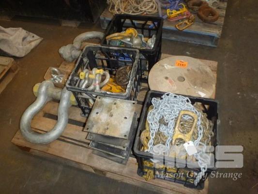 PALLET CHAINS, SWIFT LIFTS, SHACKLES, SINGLE LEG LIFT CHAIN & PAIR 55 TONNE BOX SHACKLES & WIRE ROPE