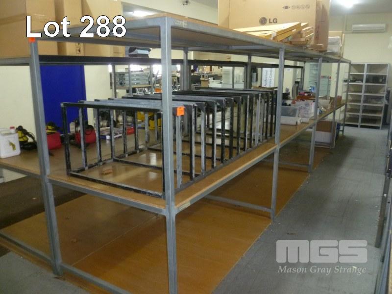 2 x STORAGE RACKS, STEEL FRAME, CHIPBOARD SHELVES, 4.2(L) x 1.95(H) x 1.2m(W)