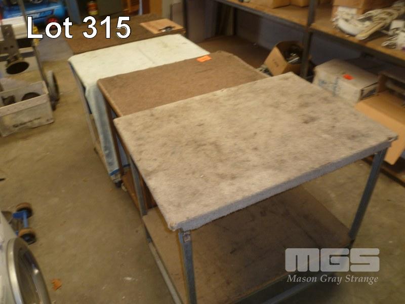 4 x CARPETED MOBILE TROLLEYS, 2 TIER, 90 x 70cm