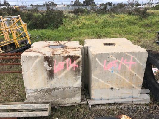 4 x CONCRETE BOXES WITH LIFT PINS, APPROX 2T EACH, 900 x 900 x 900mm APPROX