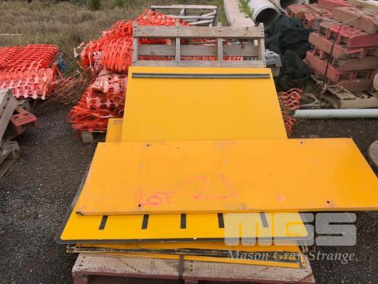 ASSORTED ROAD SIGNAGE & ORANGE SAFETY BARRIER PVC ROLL OUT, 5 x PALLETS