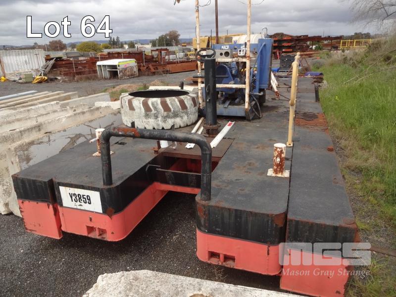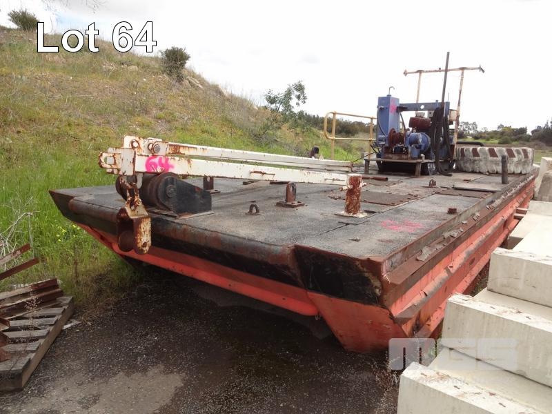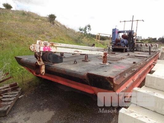 WORK BOAT, STEEL, (RUSTED) 9 x 3m APPROX PLATFORM TOP WITH WINCH, HYDRAULIC POWERED BY LISTER TWIN CYLINDER DIESEL & BOOM