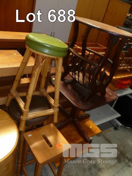 9 x PIECES ASSORTED FURNITURE, MAGAZINE RACKS, STOOLS, MOBILE TABLES & SIDE TABLE