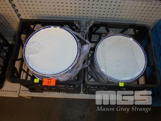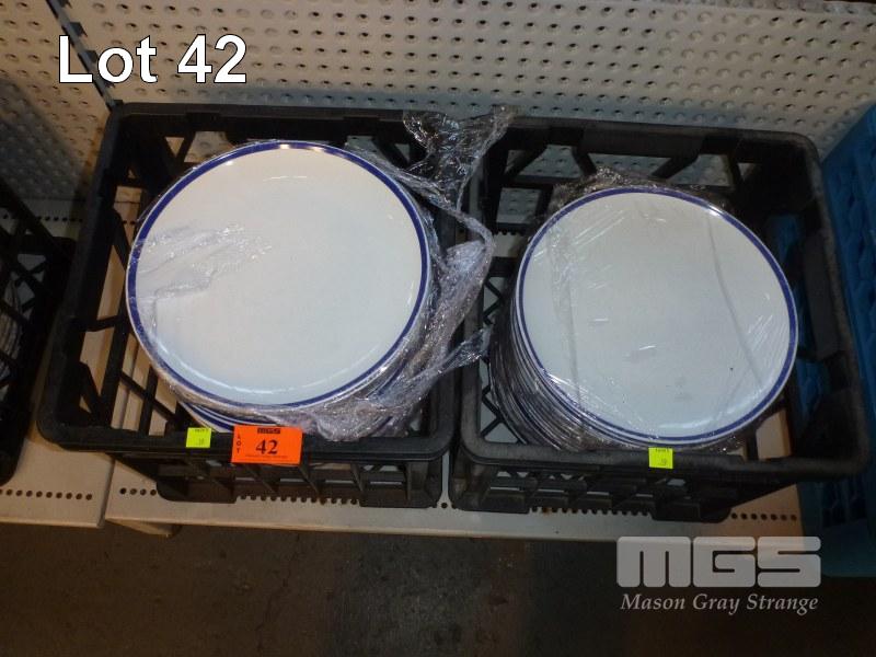 50 x DINNER PLATES, BLUE RIM, 29cm