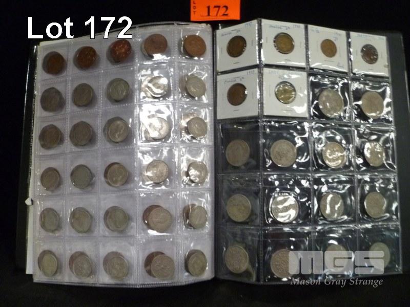 COIN ALBUM CONTAINING 164 COINS, INC; INTERNATIONAL, AUSTRALIAN, UK HALF CROWNS, TWO SHILLINGS, SHILLINGS, ETC
