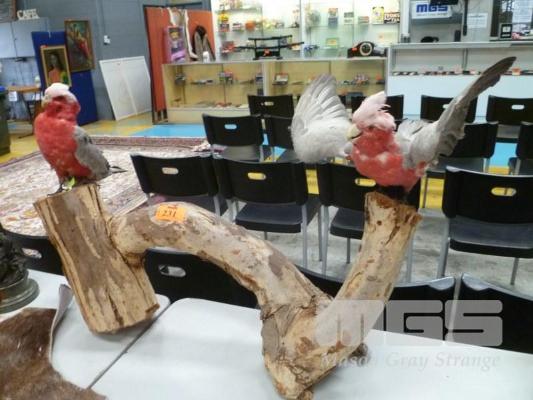 PAIR TAXIDERMY GALAHS, MOUNTED ON LOG