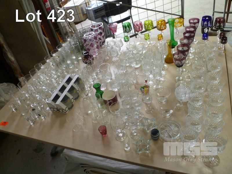 ASSORTED GLASS & CRYSTALWARE (TABLE LOT)