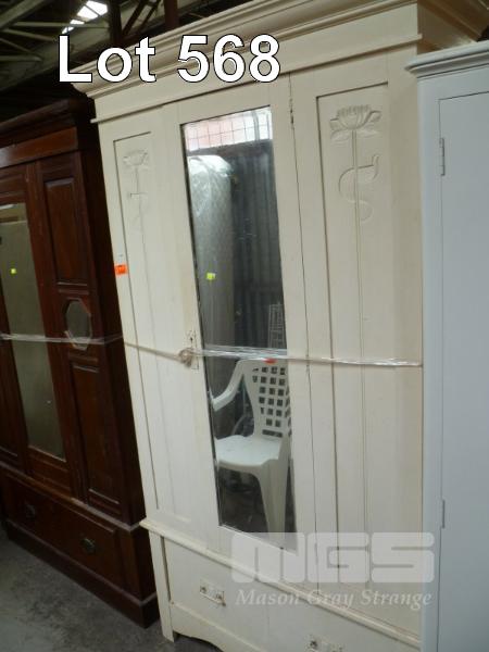 WHITE PAINTED TIMBER WARDROBE, SINGLE DRAWER/DOOR, CENTRE MIRROR