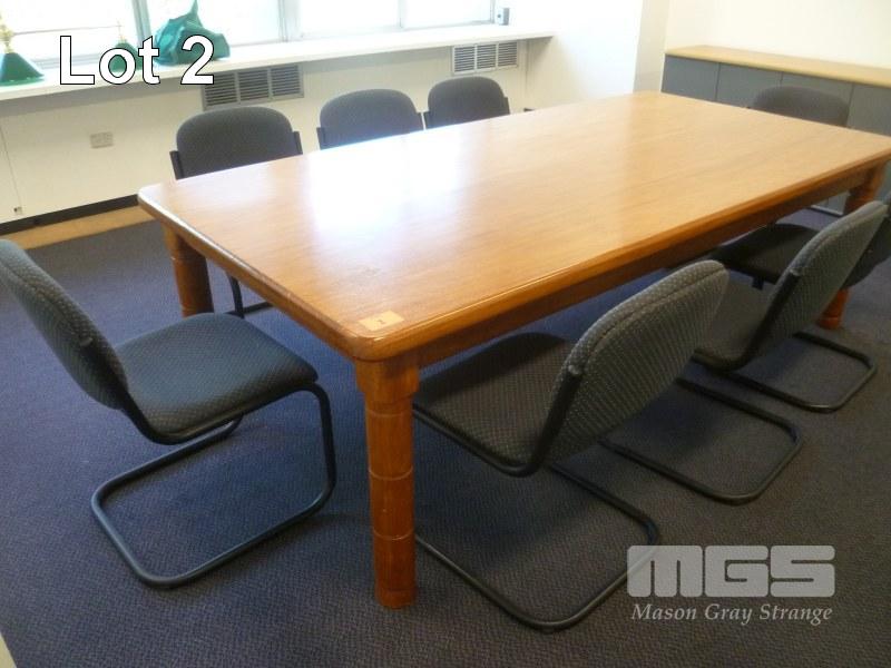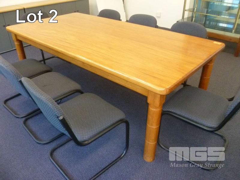 TABLE, SOLID TIMBER, 240 x 120cm WITH 8 x CHAIRS