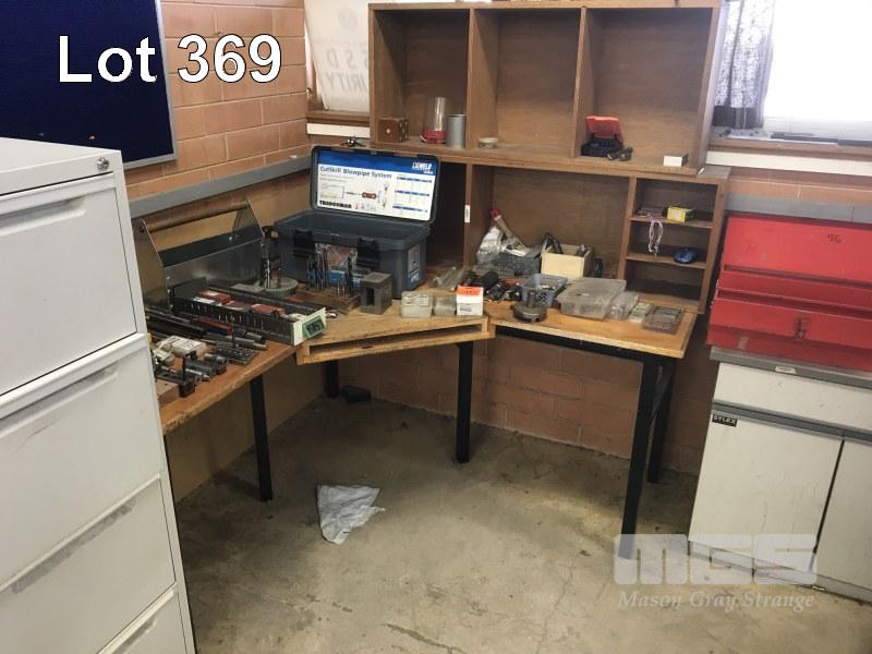 8 x DESKS, LOWLINE CUPBOARD & 2 DRAWER FILING CABINET