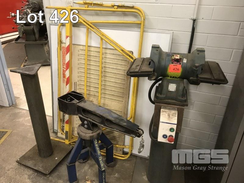 WALDOWN DOUBLE ENDED BENCH GRINDER, 8" 415V, ON PEDESTAL PLUS STUDENT PROJECT, MODEL CRANE & PEDESTAL