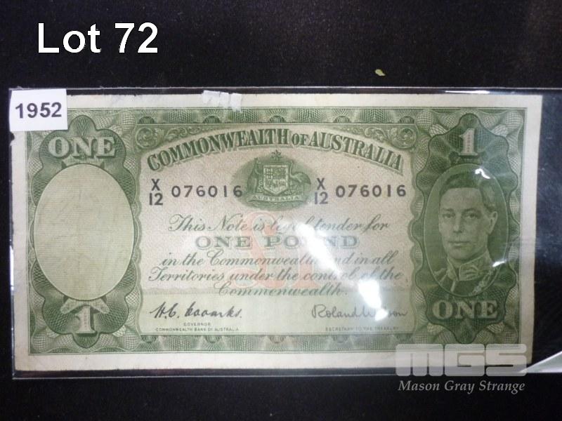 COMMONWEALTH OF AUSTRALIA, 1952, ONE POUND, PAPER BANKNOTE, COOMBS/WILSON, X 12 076016