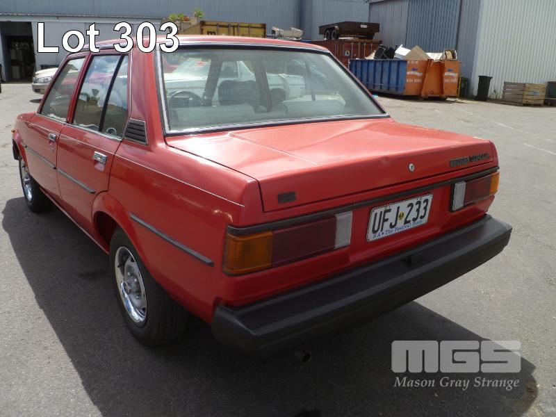 1982 TOYOTA COROLLA CS SEDAN REG: UFJ233 (SA) (EXPIRED) VIN: KE70E-9007400 ENG: 4K9057529 ODO: 239,925 4 CYLINDER, 3 SPEED AUTO, PETROL, RED DUCO, 4 DOORS, 5 SEAT, AIR CON, POWER STEERING, SPARE WHEEL (WITH PAPERS, WITH 1 KEY/S, WITH OWNER'S MANUAL, NO SERVICE BOOKS)