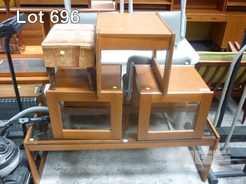 GLASS TOP COFFEE TABLE, SET OF 3 x SIDE TABLES & FOOT REST