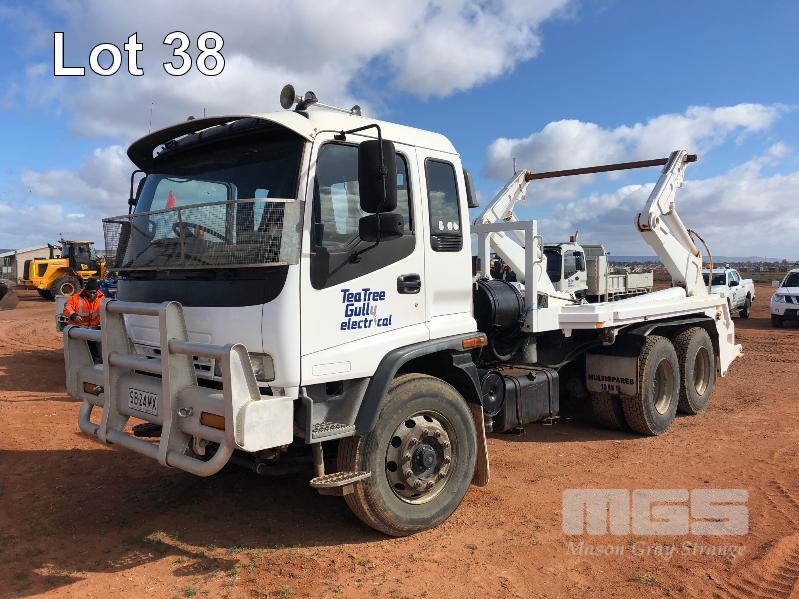 2001 ISUZU FY FVZ 6x4 BIN LIFT/REEL OUT TRUCK REG: SB 24 MX VIN: JALFVZ23MY3000012 ENG: 6SD1735902 ODO: 693,832kms INDICATED 9 SPEED TURBO DIESEL, PTO CONTROLLED CABLE REEL OUT, 15 TONNE APPROX KEY #27 (LOCATED AT PORT AUGUSTA) (NO PAPERS, NO OWNER'S MANUAL, NO SERVICE BOOKS)