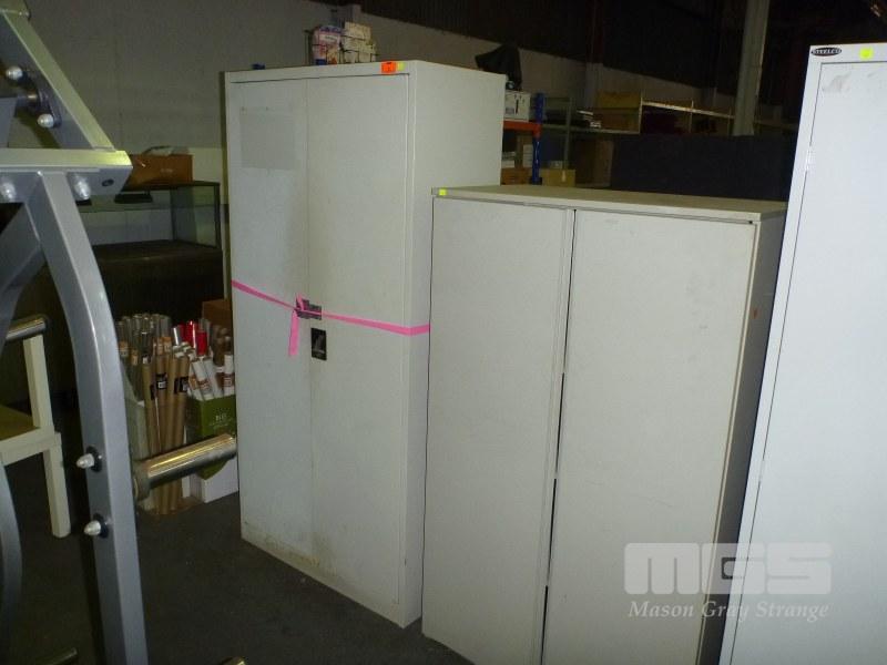 2 x ASSORTED 2 DOOR STATIONERY CABINETS (1 x DAMAGED)