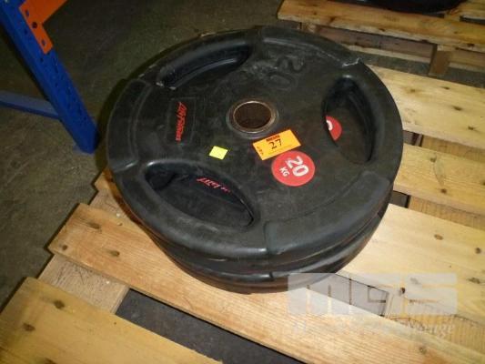 3 x RUBBER BUMPER WEIGHT PLATES, 20kg