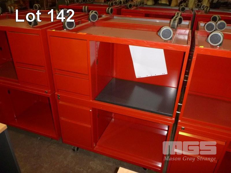2 x MOBILE CREDENZAS, 2 DRAWER, 100cm, RED STEEL