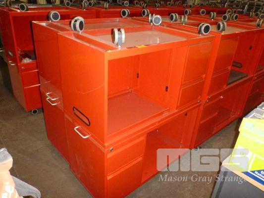 2 x MOBILE CREDENZAS, 2 DRAWER, 100cm, RED STEEL