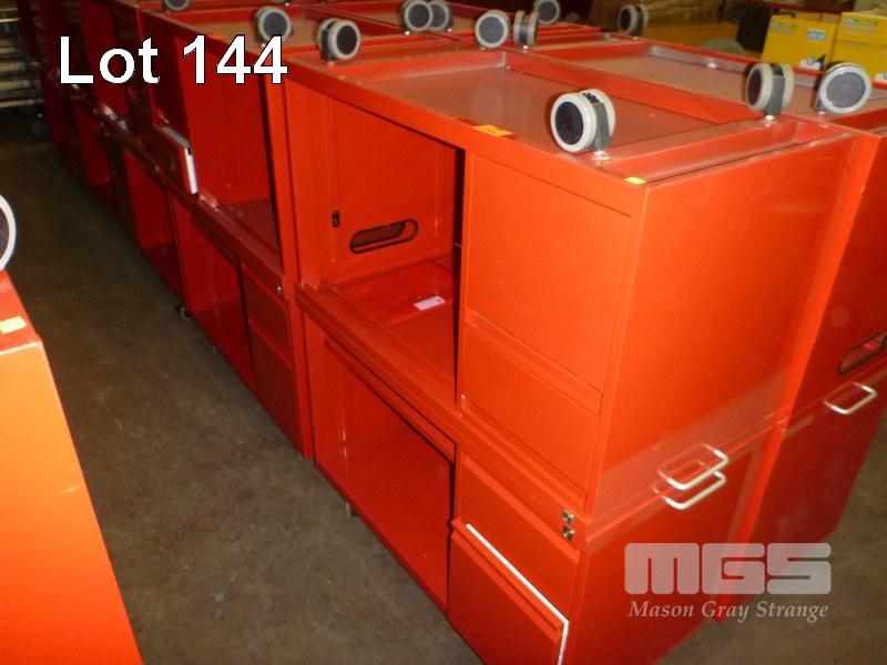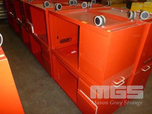 2 x MOBILE CREDENZAS, 2 DRAWER, 100cm, RED STEEL