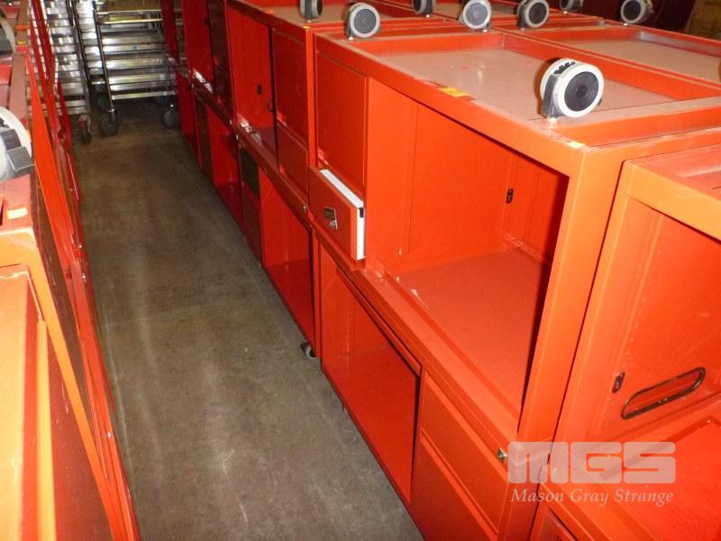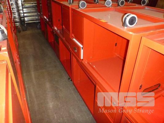 2 x MOBILE CREDENZAS, 2 DRAWER, 100cm, RED STEEL