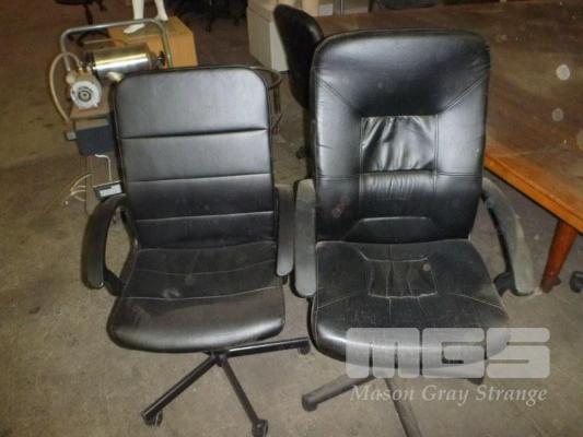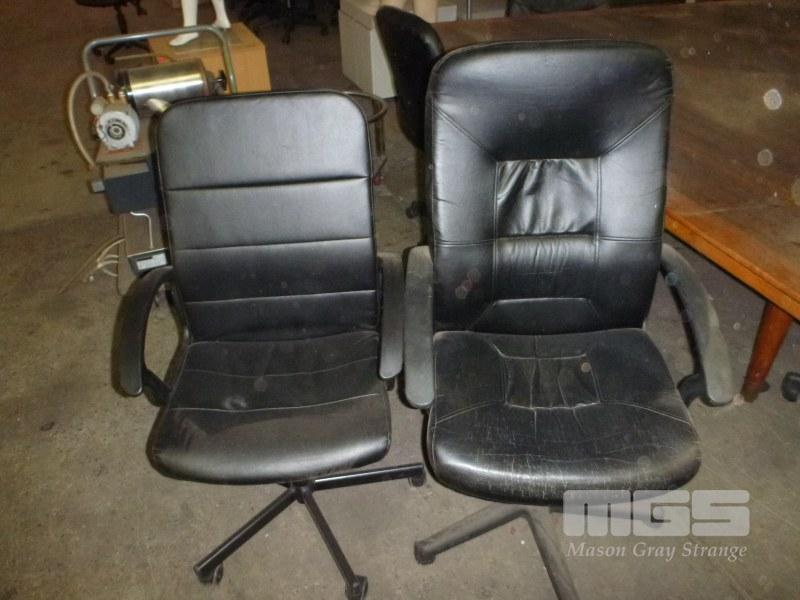 7 x ASSORTED GAS LIFT ARMCHAIRS, BLACK VINYL