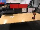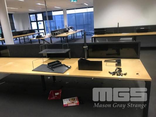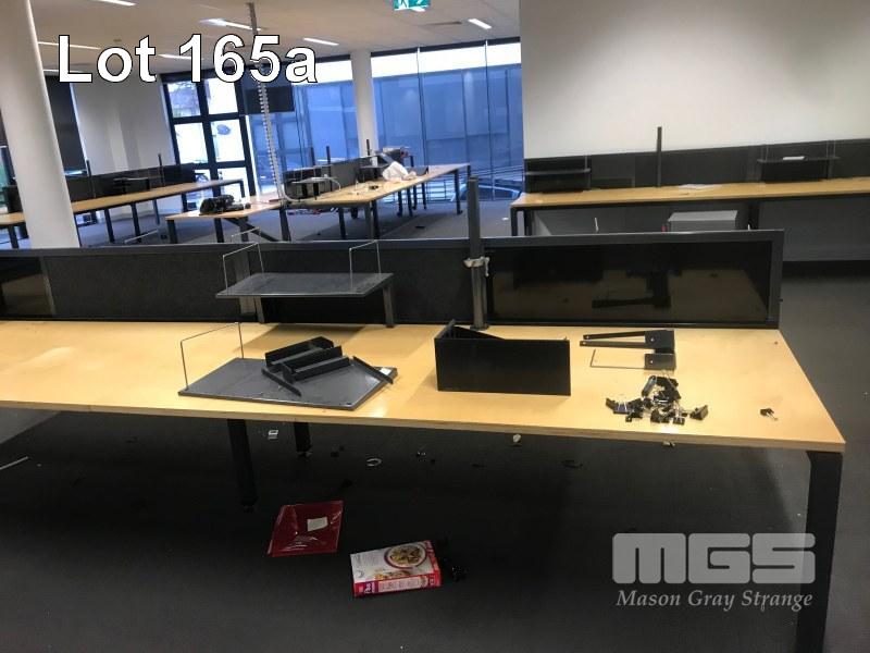 40 PERSON OFFICE WORKSTATION, EACH 200 x 87cm, VENEER TOP, STEEL FRAME WITH DIVIDERS, DISMANTLED.