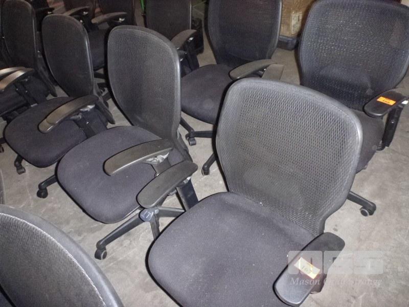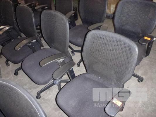 6 x GAS LIFT ARMCHAIRS, BLACK FABRIC SEAT, MESH BACK