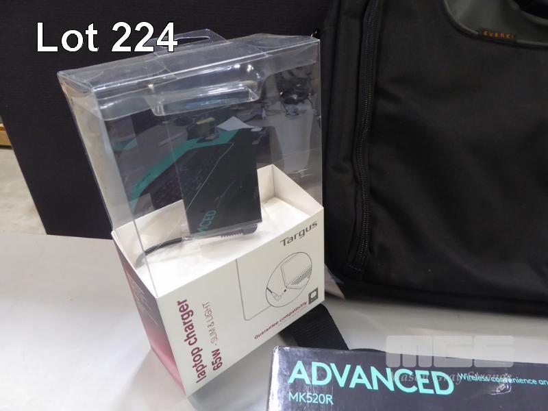 LOGITECH ADVANCED MK520R WIRELESS KEYBOARD & MOUSE, TARGUS 65W LAPTOP CHARGER, EVERKI ADVANCE 17.3" LAPTOP CARRY BAG