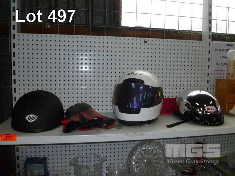 3 x MOTOR CYCLE HELMETS & PAIR GAUNLETS