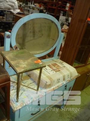BLUE PAINTED TIMBER DRESSER, TILT MIRROR, HALL TREE (FLAT PACK) & SMALL GRANITE TOP SIDE TABLE
