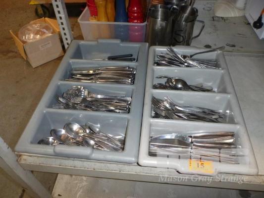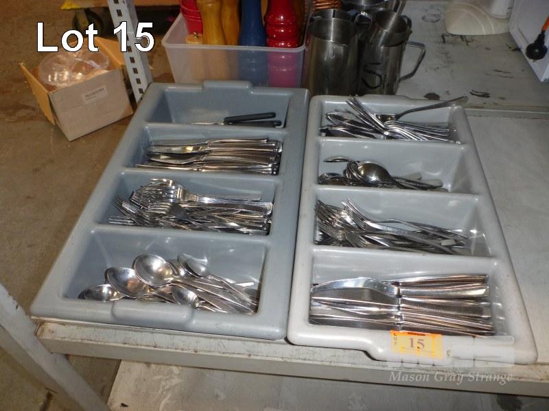 LARGE QUANTITY KNIVES, FORKS & SPOONS (2 x TRAYS)