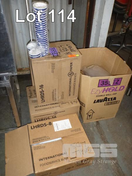 FOAM CUPS, LIDS, MENU CLIP BOARDS, 5 x BOXES