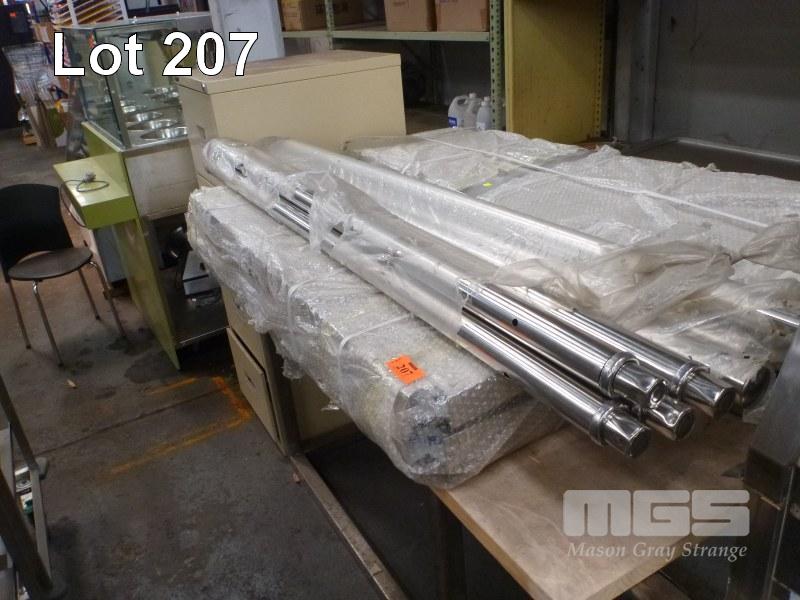 2 x STAINLESS STEEL SHELF UNITS, 150 x 45cm & 120 x 45cm, EACH 4 TIER (FLAT PACK)