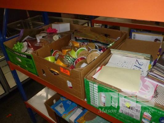 CARDS, RIBBON, BOWS, GIFT WARE, ETC, (4 x BOXES)