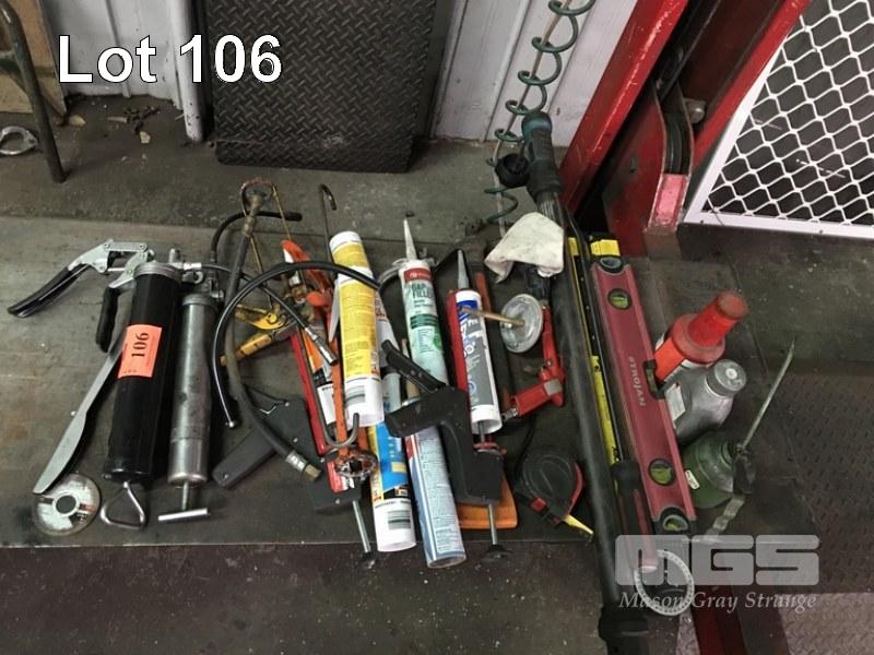 GREASE GUNS, CHALKING GUNS, SPIRIT LEVELS, ETC