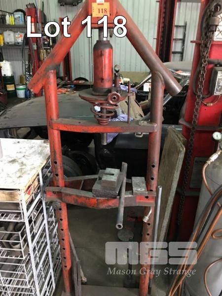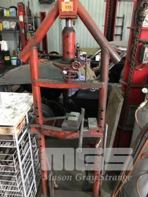 WORKSHOP PRESS, 20 TONNE, 45 x 80cm INTERNAL HEIGHT/WIDTH, HYDRAULIC HAND OPERATED, WITH WIRE BASKET RACK & ASSORTED TOOLING
